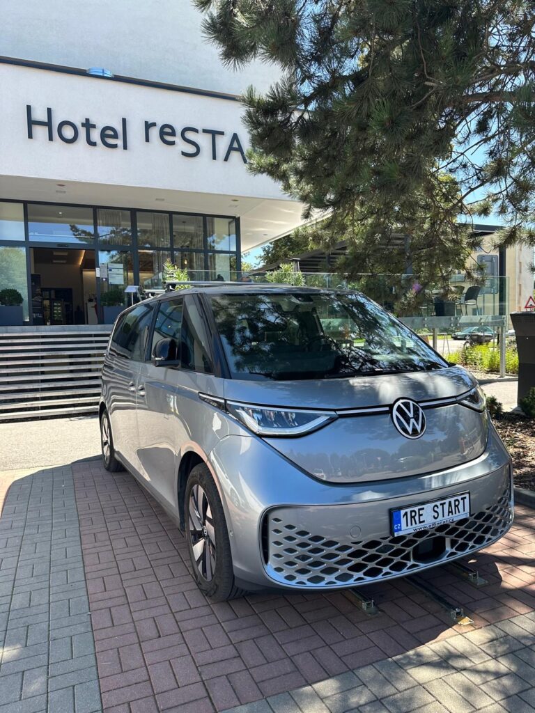 Pro provoz hotelu a činnosti jako je nakupování surovin, převoz nábytku a dalších věcí, nám slouží naše elektroauto Volkswagen ID. Buzz.